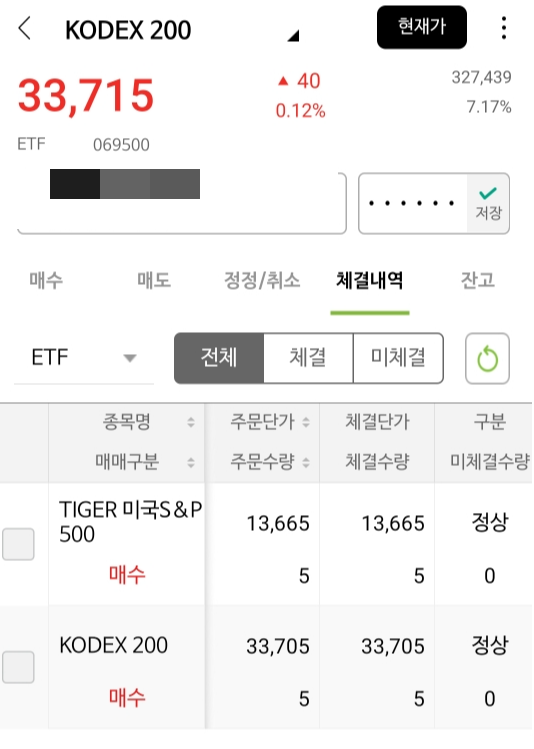 일단 5월 23일 기준 TIGER 미국 S&P 5개랑 KODEX 200 5개를 구매했다.