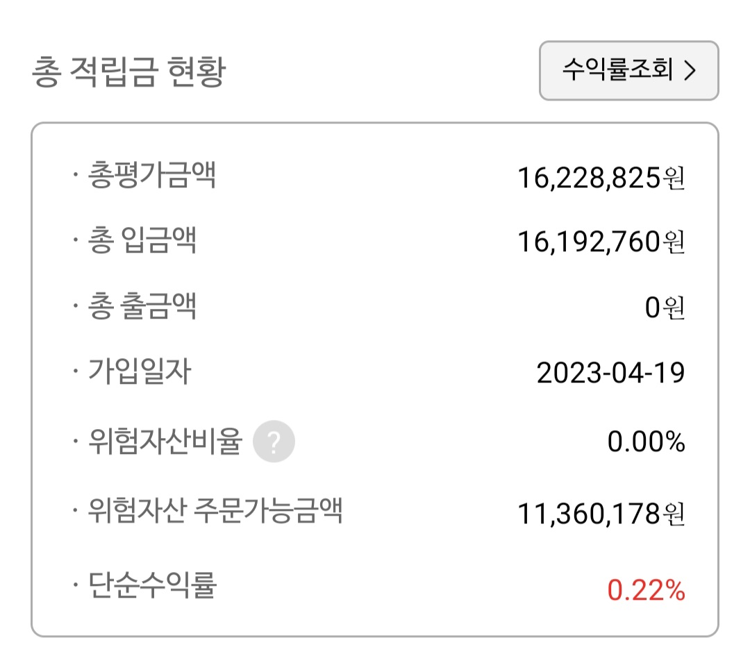 어떻게 앞으로 운용할지 중간중간에 기록을 할 예정이기 때문에 나의 투자 시작점인 퇴직금 현황을 기록해두려고 한다.