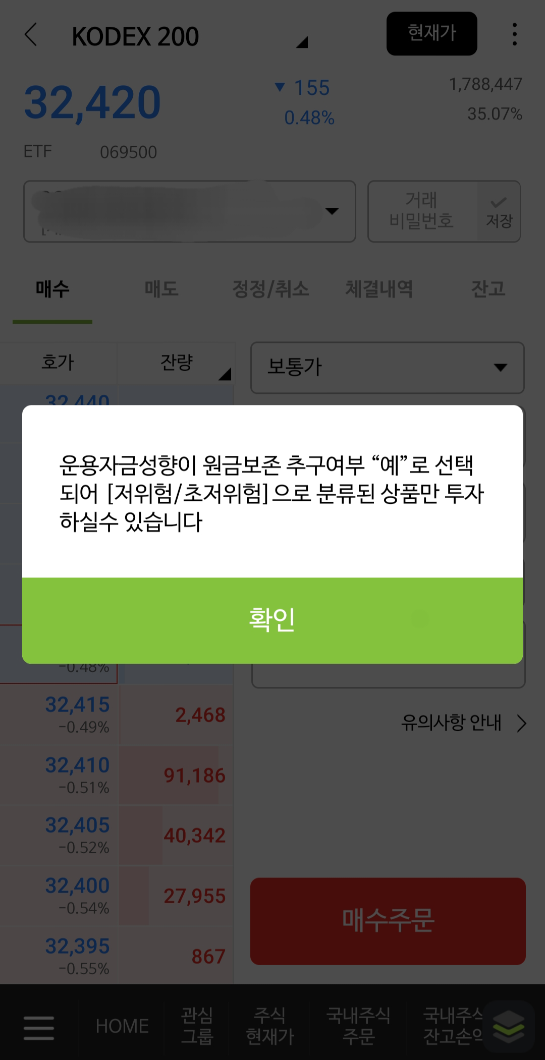나는 원금 보존 추구를 한다고 체크했었는지, ETF 구매가 안 되는 것이었다!!!!